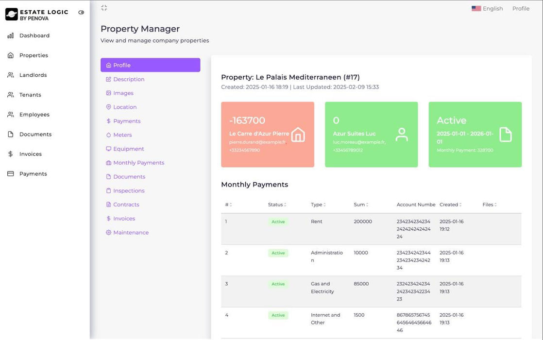 Fast and convenient management of properties, tenants, suppliers, contractors, financial flows,