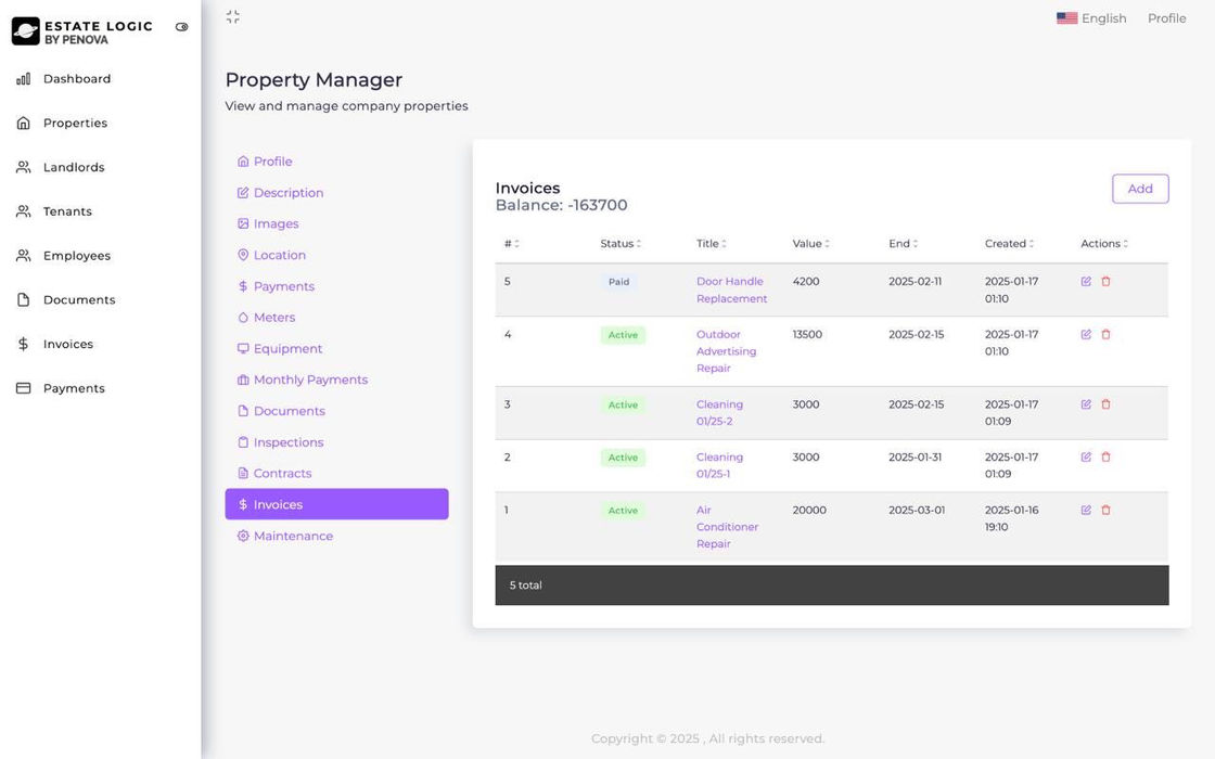 Landlords can monitor financial data, expenses, rental terms, invoices, etc.